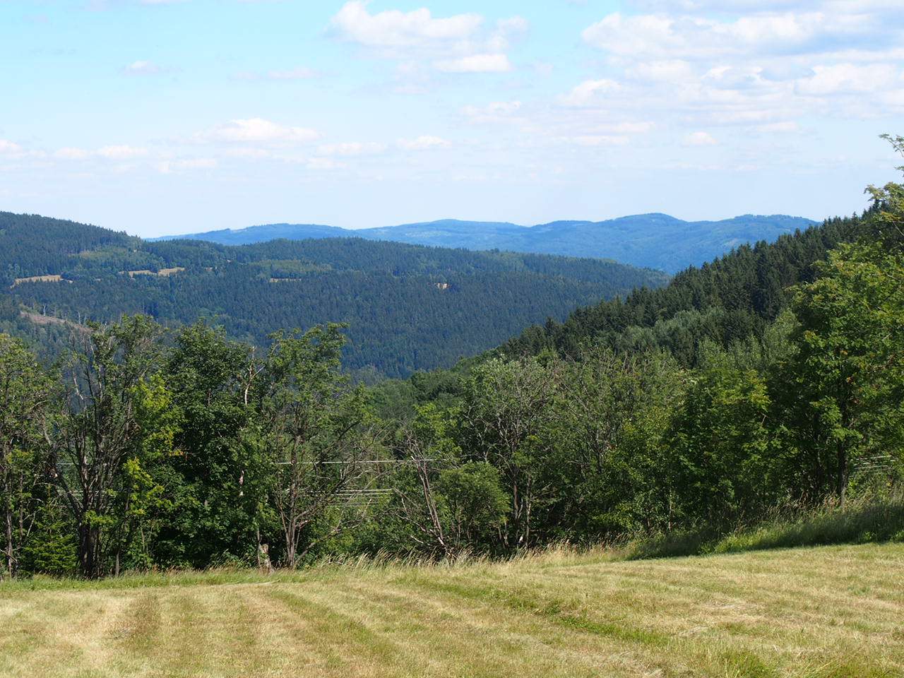 No a po občerstvení sestupujeme zpět do Hřebečné. Tady ještě jeden pohled na krásné ... ale trochu zamračené Krušné hory... začínalo pršet.