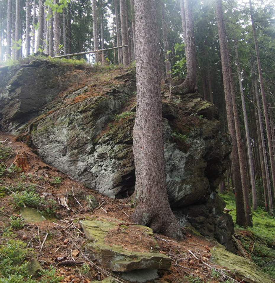 Tentokrát jsme se vydali ke skalám na Strašidlech. Hlavní skály, kde je ze dřeva vyřezaná socha posledního krušnohorského medvěda, jsme sice nenašli, ale aspoň něco jsme prolezli.
